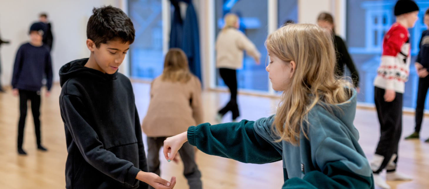 Forløbet afvikles ude hos jer på skolen og løber over fem besøg. Alle lege og øvelser i forløbet foregår på et frit gulv, så her har vi ikke brug for hverken computer, pen eller papir - kun for vores krop, sanser, fantasi og evne til at lytte med både ører og krop.